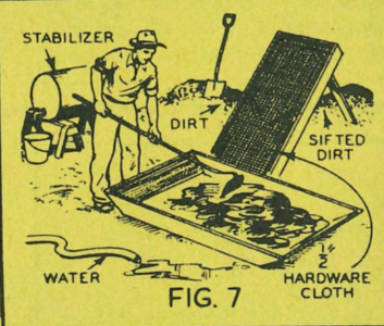 The important ingredient of adobe bricks is a liquid stabilizer which not only renders them waterproof but increases their hardness until they are practically as durable as concrete. Stabilizer is sold under the trade name of Bitudobe manufactured by the American Bitumuls Company, San Francisco, California, and Bitumuls sold by the Standard Oil Co. of California.