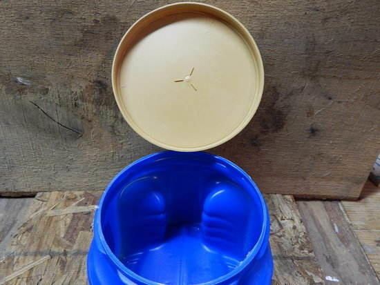 Start by ensuring that your coffee can has been thoroughly washed with mild soapy water, then rinsed and dried. I recommend using a durable plastic can, or metal, for this project (some coffee cans are now made from a cardboard-like material and will fall apart easily). If you have scrap one inch thick lumber or rough cut wood, or maybe even a few pieces of pallet lying about, this is ideal for making the backing that you can use to fasten the can to a tree or post. Gather all needed tools for ease of access once you are ready to begin.