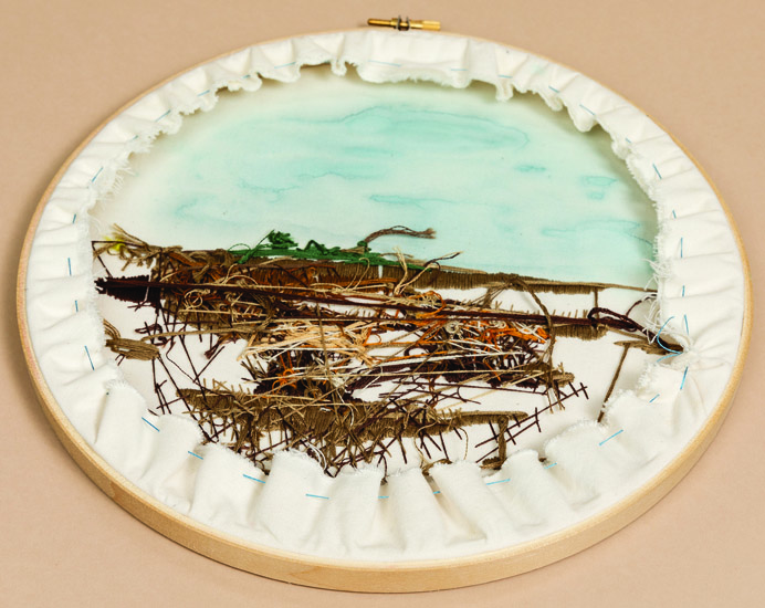 Learn embroidery landscape techniques, using hand embroidery grass details to capture the eye and guide us through the art landscape.