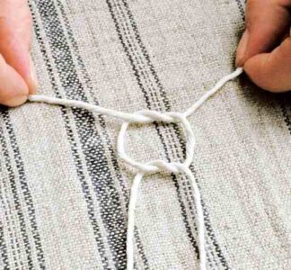 - Take the left cord from a pair and tie it to the right cord of the pair next to it using an overhand knot. Repeat for all pairs.