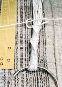 - Temporarily attach your metal ring to a nail in the wall, a chair or a table to create tension while you tie your knots.