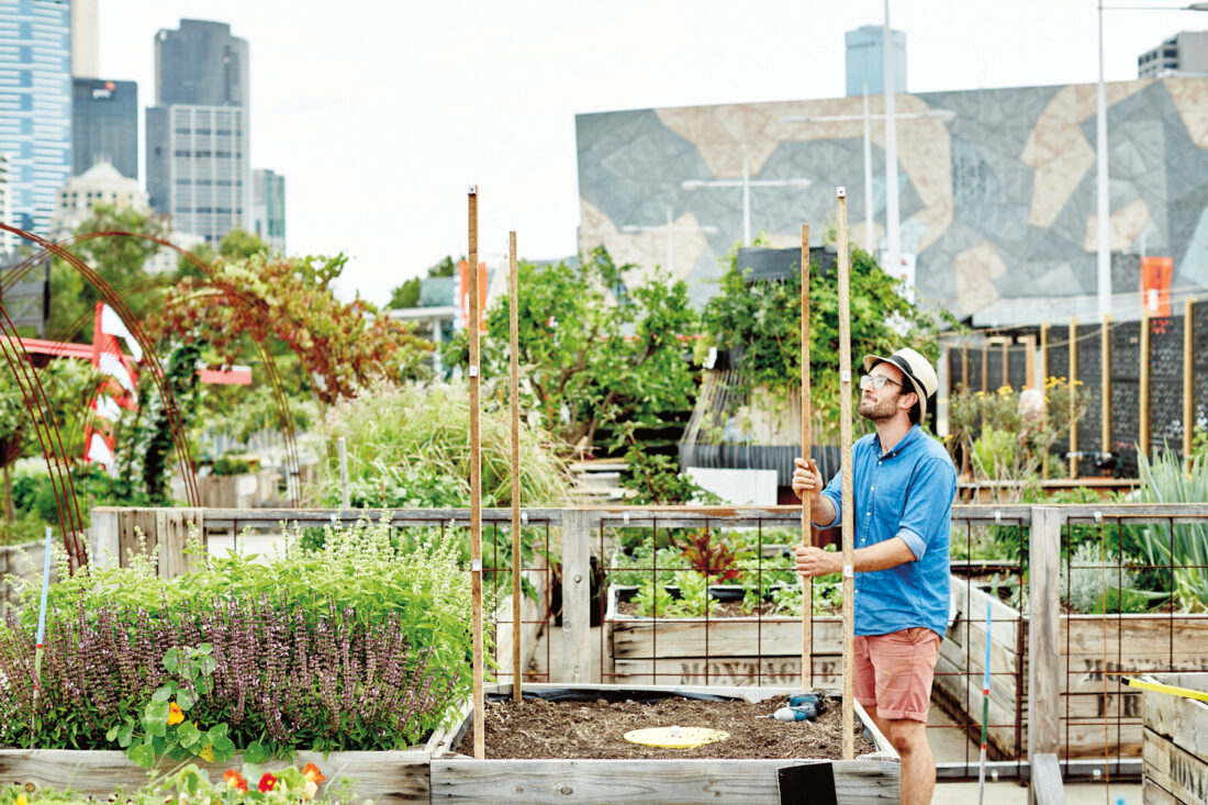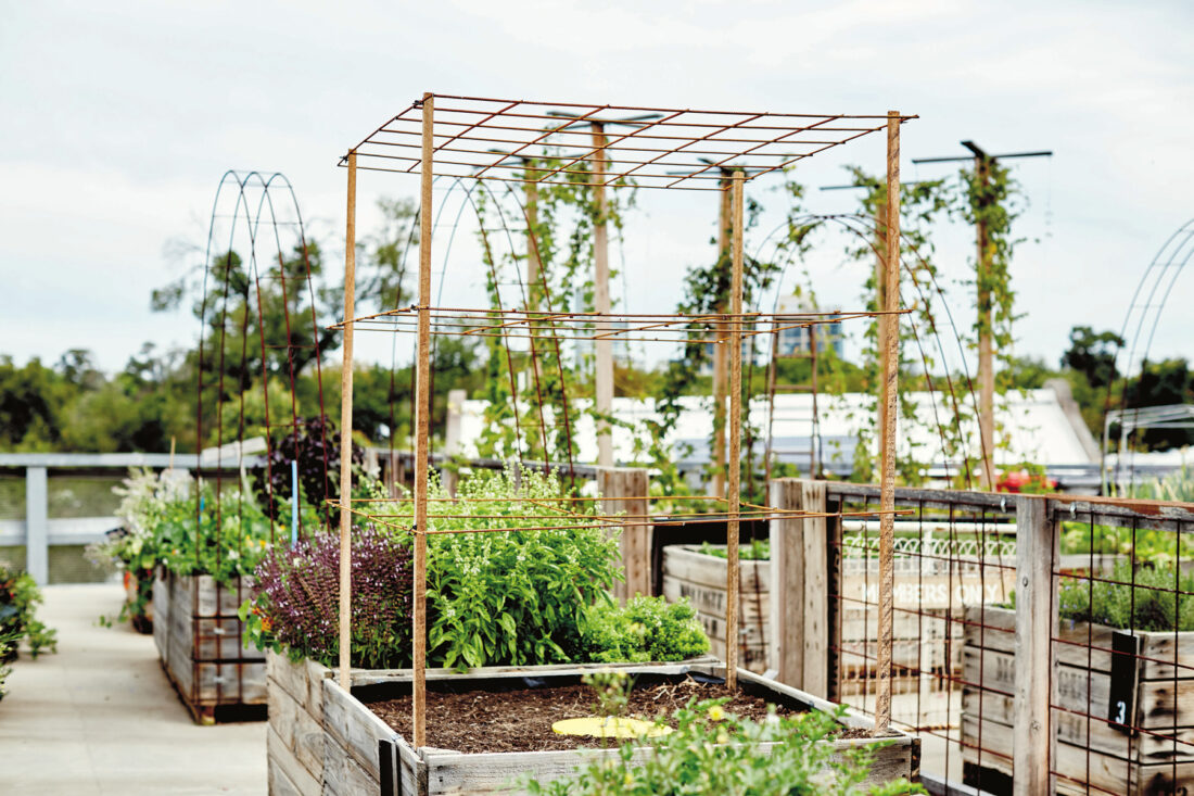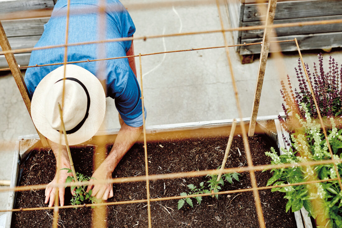 15. Plant the new season tomatoes. This system accommodates four beauties, so center them under your lower level grid. For their initial climb, they’ll need a small stake for support, but once they reach the trellis, they’ll be supported beautifully.