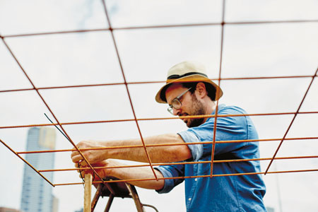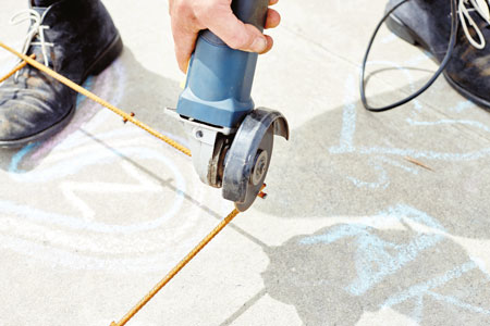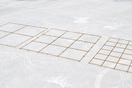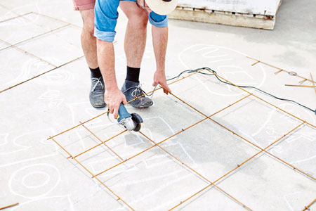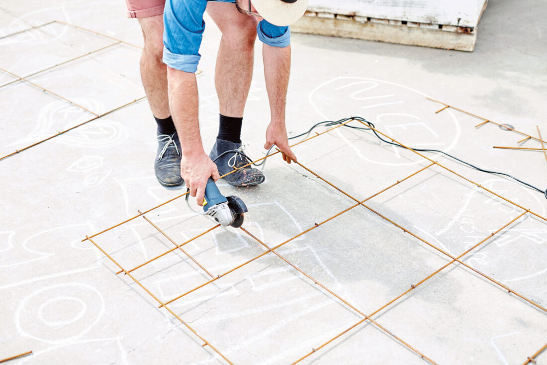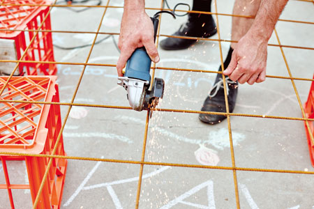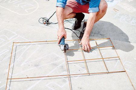 7. It’s time to prepare the reo mesh. Cut three 3-foot-11-inch squares using either hefty bolt cutters or an angle grinder – each small square in the reo grid is 8 inches, so count out six of these smaller squares to get the right length for the large squares.