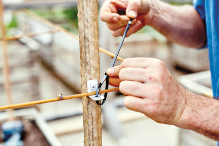 We have always enjoyed playing around with stakes and twine but this is a little more serious. There will be lots of foliage and lots of fruit relying on this system, so your hands need to be splinter-free. For that reason, we’re calling in the big guns! It’s a material that every Italian tomato grower has a great affinity for: concrete reinforcing mesh!