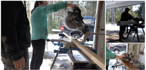 Finally, cut the 2x6x8 “shelf” down to 5-feet-long. The ladders will be 4-feet-long and the shelf and gutters will overhang and be five feet long.
