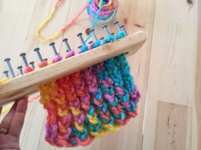 Tip: Search for YouTube videos on “loom knit scarf” for a tutorial on getting started.