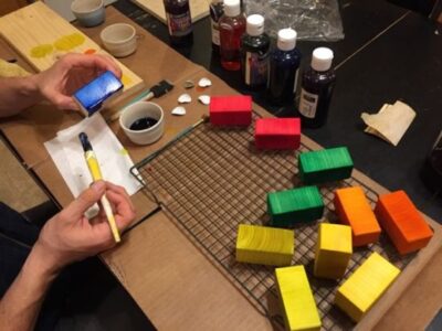 Optional: Coat the blocks with clear lacquer to preserve the paint job. Water-based dyes will bleed if they get wet.