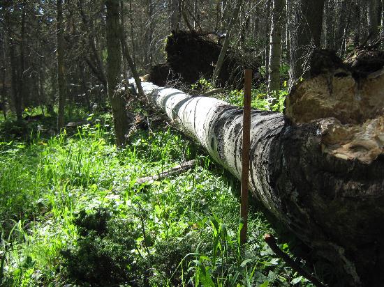 Maybe its living where and how we do, but nothing ever seems to go as planned. What starts out as a simple task can suddenly become a complicated process. Like this years gathering of firewood for instance. We believed we had a sufficient amount already cut and stacked but decided since we had a few standing dead aspen trees we would get ’one’ more load just to have a little extra on hand. Sounds like a sensible and reasonable plan, but what we found when we arrived at the end of our property was unexpected. Some large green aspen trees were blown down and blocking our access to the prime firewood.