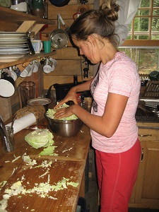 It’s a task, to bring the harvest from our gardens in and put it up in ways that will preserve it. Pretty much every day for the next couple of months I’ll spend part of the day filling our cellar back up, one way or another, whether it’s chopping cabbage for kraut, picking apples, sorting storing pears, drying herbs, packing carrots or canning tomatoes. I know what it takes, but I also know what I get. Last year Dennis and I went through several months in the depth of winter and spent less than $50 on food. Still, we had unlimited access to better, fresher and more food than ever before in our lives.