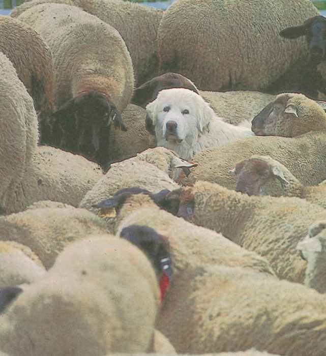 The guard dog lives full-time with the flock and accepts the livestock as family. It will investigate and aggressively confront intruders, but will be attentive to the sheep and never harm them. A guard dog can take up to two years to mature into its role as flock guardian, an important fact when considering this as a predator-control option.