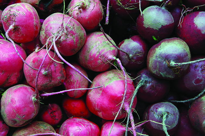 6 Locally grown storage vegetables, including sugar pie pumpkins, winter squashes, beets, or carrots.