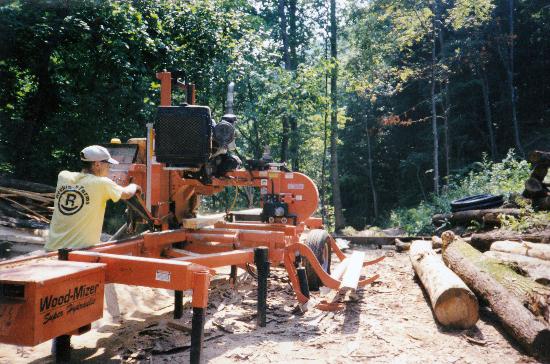 I spent the next year logging what the timber company had left on the ground, using my four wheel drive 1978 Ford Bronco. After exhaustive research, I came to terms with a sawyer that owned a portable band-saw mill. When inspecting my log piles, he estimated the job would take four or five days. This seemed quite ambitious, considering the fact that I was working full time, and planned to haul off and stack the days’ sawed lumber, and roll down the next batch of logs to be sawed the next morning, after the sawyer had finished for the day. Quite a lot to say, much less do! In spite of my serious doubts, we began to saw lumber.