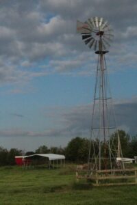 We then had a well dug in the meadow to provide water to each paddock. A windmill was built and water lines buried to each paddock. Additionally, we are gradually improving the forage by frost-seeding a variety of legumes and grasses each March.