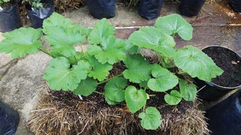 Planting seedlings in straw bales is as easy as using your hands or a trowel to create a “divot,” popping the seedling out of its container, and positioning it as deeply as you can, just as if you were planting in soil. Fill in the gaps with good-quality planting mix, bringing it level with the top of the bale. Mulch around the plant with untreated grass clippings, shredded leaves, or shredded bark, and then water the plant deeply at the base.