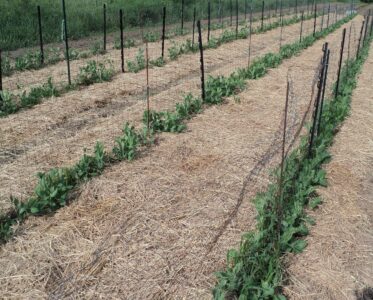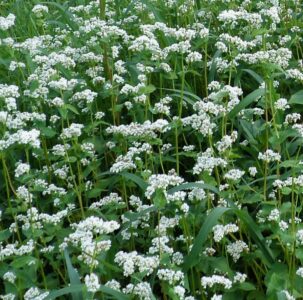The benefits gained from plant diversity are manyfold. When striving to support a diversity of beneficial garden insects and soil microbes, using a diversity of plants is natural, offering different habitats, food sources and root exudates. Additionally, different plants perform different functions in terms of contributing to soil improvement. Legumes fix (pull) nitrogen from the air. Grasses hold nitrogen in the soil. There are many crops of each which produce large quantities of biomass both above and below ground level, thus contributing organic matter when terminated. Examples of biomass-rich plants include the legumes mammoth red clover, white Dutch clover, and yellow sweet clover, and the grasses oat and rye. Of course, the practice of plant diversity can apply to both soil-improving and cash crops.