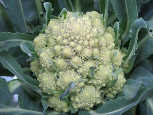 Last year we attempted to grow one, 8-foot row of Romanesco and did not have much luck. I think we got greedy and did not follow spacing requirements. Maybe we didn’t start them early enough. But we did harvest one. This year we will try again with another row.