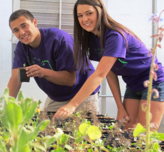 The class works in two greenhouses and a traditional classroom. The students, who for some are after an “easy science credit” quickly learn there’s a lot more to this type of botany program. “The kids not only learn the science end of this course, but they also learn about marketing, advertising, accounting and customer service,” adds Bell. Students, such as Austin Diffey and Katarina Labrador (shown at right), help work the sale and manage the plant display.