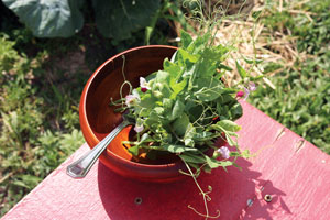 Above: Austrian winter pea shoots add crunch and flavor to winter salads — a bonus from this cold-hardly, nitrogen-fixing cover crop.
