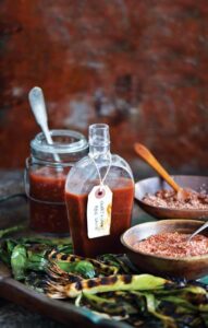 Smoke may be the soul of barbecue, but the rub and sauce gives it personality. However, what you mean by “barbecue sauce” depends on where you live or grew up. In Kansas City, barbecue sauce typically means a thick, red, sweet, smoke-scented condiment typified by the commercial brand KC Masterpiece. (And variations exist even in Kansas City.) In North Carolina, barbecue sauce is a watery amalgam of vinegar, salt, pepper, and hot red pepper flakes — with nary a drop of molasses in sight. South Carolinians favor mustard-based barbecue sauces, while in Alabama, you might get a white sauce comprised of mayonnaise and vinegar that leaves you wondering whether it’s barbecue sauce or salad dressing. The truth is, while we Americans love barbecue sauce, we don’t agree on what it is.