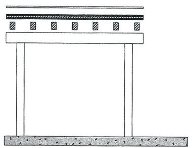 - Make forms to support the poured concrete roof. The roof should be reinforced with crossed and tied reinforcing bars as shown in the diagram. The bars should be embedded in the bottom half of the poured concrete roof. If they’re too close to the surface, they don’t do much to strengthen the roof. The pour is made directly on plastic-covered 3/4-inch plywood, which is supported by joists resting on beams, which are held up by 4-by-4 posts. You’ll also need a form running around the roof perimeter to hold the concrete ceiling until it dries and hardens. Make this form out of 2-by-6 lumber and attach supports at the corners and at least every 4 feet along the sides. Without these supports, the weight of the concrete is likely to bulge the forms and then drip through the gap. Why cover the plywood with plastic? So that water from the concrete mix doesn’t seep through and drain off, weakening the concrete. A flat roof is easiest to build; just remember to insert the exhaust and intake pipes in the ceiling form board before you pour the concrete for the roof.