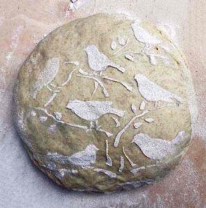 To make your own stencils, you’ll need a sharp utility knife, sturdy paper or plastic, and a surface to cut on. I recommend cutting your stencils out of old file folders or cardstock. You’ll also need a very fine sieve for dusting flour onto the bread through the stencil. The only real trick to stenciling breads is that after you’ve dusted the stencil with flour, you’ll need to lift it straight up and away from the bread so you don’t spill any flour. Adding tabs to your stencil can help with the vertical lift. If you buy plastic stencils, you may find that dusting the underside with flour will help keep them from sticking to the dough.