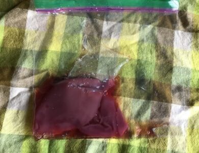 It was mother of vinegar, or mère de vinaigre, as it is called in France. Mother of vinegar is a substance composed of a form of cellulose and acetic acid bacteria that develops on fermenting alcoholic liquids. It is similar to a SCOBY, or the Symbiotic Culture Of Bacteria and Yeast used to grow kombucha, but the acidity in vinegar kills off the yeast that is a part of a kombucha SCOBY.