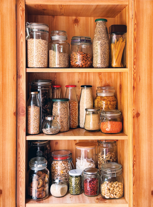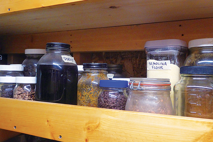 To get an idea of what should go in your deep pantry, start a log of every ingredient you use while preparing meals over the period of, say, a month. This will give insight as to whether you depend too much on prepackaged convenience foods, as well as an idea of how many staples (flour, oatmeal, pasta, etc.) you go through. The rule of thumb is to store what you eat and eat what you store (and rotate, rotate, rotate!). Break down those meals into their shelf-stable component ingredients, and make sure you have a suitable quantity of each ingredient stored.