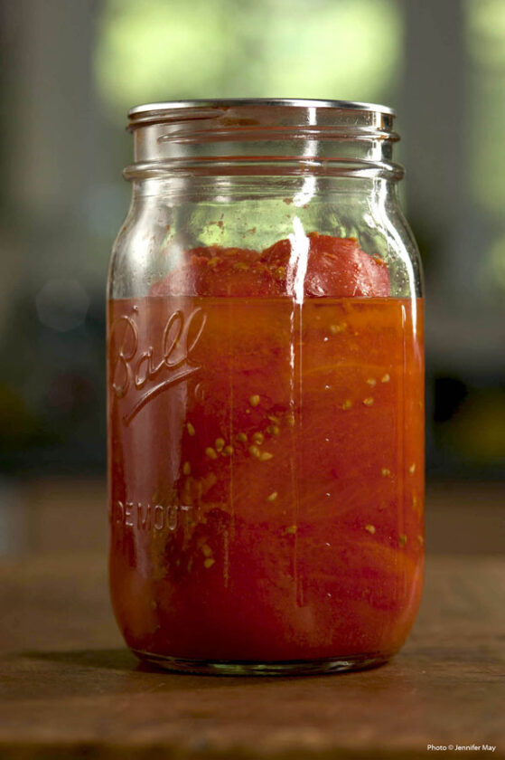 If you’ve ever processed gorgeous produce only to find that the contents of your jars have separated into distinct bands, with solids at the top and liquid at the bottom, you have experienced the dreaded fruit float. While it can occur in any recipe, fruit float is most pronounced in jars of canned whole fruits that contain a high proportion of liquid by nature and in jams, jellies, and preserves, where the gelling process sometimes suspends floating fruit as the spread sets, rather than letting it disperse throughout the mixture. Jars of whole canned tomatoes — picture-perfect going into the canner — come out clotted, with a dense layer of tomato bobbing atop inches of tomato water. Fruit float will turn a ready-for-its-close-up jam into a two-layer concoction of too-thick jam over clear jelly. While less common, fruit float may also manifest as a thin layer of liquid at the base of blended items such as barbecue sauces and mixtures such as salsas.