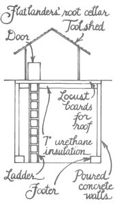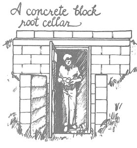 If you have a dirt-floored cellar room in your house, you’ve got a good start for root storage right there; all you need to do is enclose and insulate the space. Or perhaps there’s a north- or east-facing hill on your property where you could dig into the slope and line the space with stone or concrete block. On flat land, you could go straight underground and dig a cavern, insulate and roof it and then top it with a shed. Many midwestern gardeners build mound-topped underground food closets which double as storm shelters. You can even buy a prefabricated fiberglass shelter/storage room, have it delivered to a bulldozed hole and then call the dozer back to pile a soil bank over it — an almost-instant root cellar!