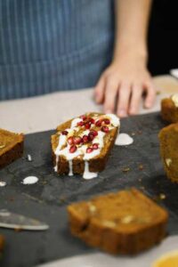 - Bake for 1 hour and 10-15 minutes until knife or toothpick inserted in center comes out clean. Cool before slicing.
