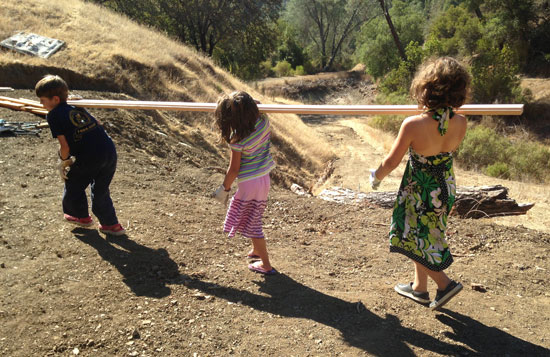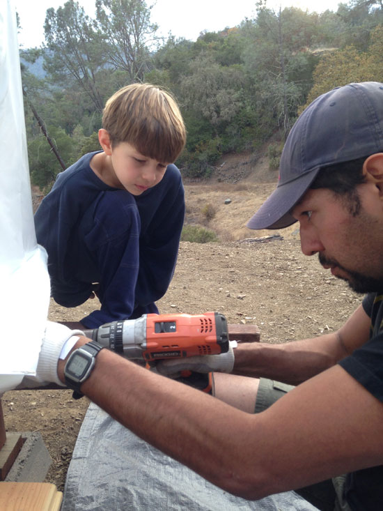We have done all the building ourselves. My husband is very handy as an electrician, and I, well, let’s just say I’m willing and a fast learner. We did pay a neighbor to grade the land for the dome platform and our shouthouse, which was about two days of work. Otherwise, we built it all ourselves. We’re both working and home schooling our kids, so we’ve done most of the work on weekends, holidays and occasional days off. We had plenty of offers for help from friends and family, but we really savored the opportunity to work together as a family and to model self-sufficiency for our kids.