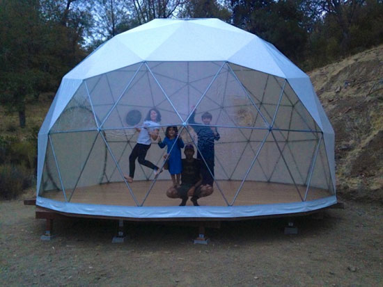 About six months ago, our family sold our million-dollar home on the San Francisco Peninsula and used the small profit to buy 9 acres of land outside of San Jose. We plopped an RV on it, bought a geodesic dome kit with cash, and put it up together with our children, who are 6, 8 and 10 years old. We have been blogging about the experience at Post-Consumer Life.
