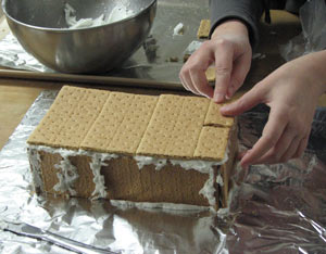 Structural Insulated Panels (SIPs):The ingredients: Two graham crackers stuck together with frosting to form each panel.