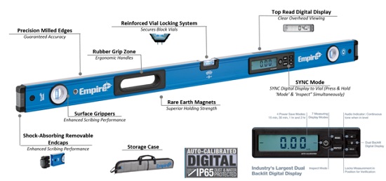 These are the best leveling tools for you if you like a bit of technology in your workspace. Though most electronic levels still contain a bubble, they’re a step above the kinds that only use vials. They have the added accuracy of digital readings, which can give you correct measurements down to the decimal point.