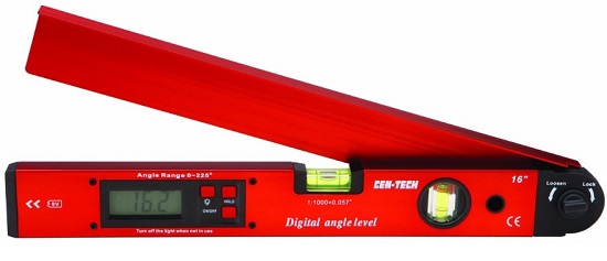 Try the Pittsburgh 16 Inch Digital Angle Level from Harbor Freight for an accurate display. It has a backlit LCD screen for easy viewing in the later hours, and it can go up to 225 degrees in 0.1 increments. It has a much broader range than the typical 90-degree limit, making it a superior choice for home and construction work.