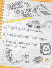 • Look for recycled school supplies. Over 30 percent of our trash comes from cardboard and plastic packaging. When buying school supplies, look for pens, pencils, notebooks and notebook paper that are packed with and made from recycled and recyclable materials. Less trash means that we save space in our landfills and help reduce auto emissions from vehicles used to transport the waste. Plus, a tree is saved for every 42 notebooks made from 100 percent recycled paper.