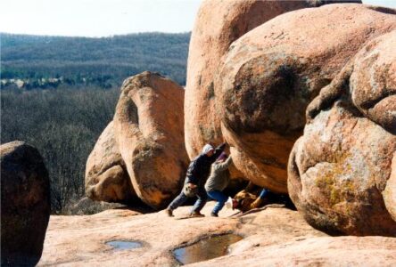 Another portion of Missouri Ozarks to see is the St. Francois Mountains in southeast Missouri. Precambrian igneous (volcanic) rocks rising on top of the Ozarks Plateau have created several geological oddities and wonders such as Elephant Rocks. Giant pink granite rocks stacked together and on top of each other, many as large and even much larger than herds of elephants, that can be climbed and explored by tourists. Johnson’s Shut-Ins, a gorge carved out by the Black River with a unique rocky landscape and watery playground, is another must-see. Trail hiking is a great way to enjoy this area. The Ozark Trail runs through this section and most other areas in the Missouri Ozarks.