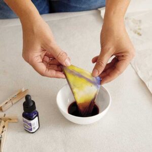 - Set the folded paper on a clean rag and allow it to dry slightly. Meanwhile, repeat the dyeing steps for the desired number of sheets.