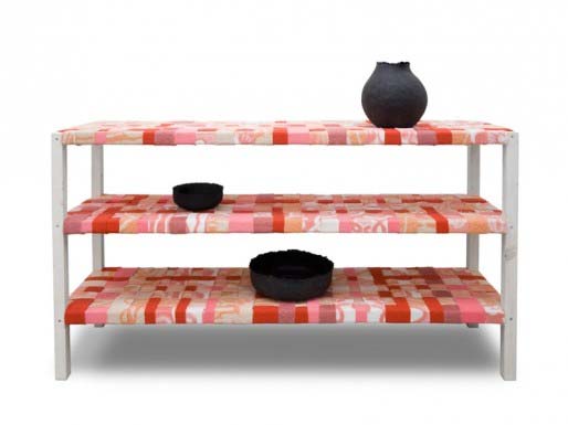 Thirty-four discarded wood beams and 16 blankets were repurposed into the bones and woven upholstery for four pieces–a bookcase, bench, stool and table–that Studio Jo Meesters debuted at Dutch Design Week 2008 as part of an experimental project called TESTLAB.